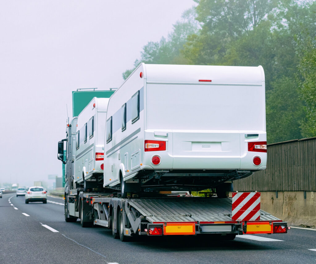 • Flatbed RV Transport – Flatbed trailers and heavy trucks allow us to carry multiple caravans or motorhomes at once.
